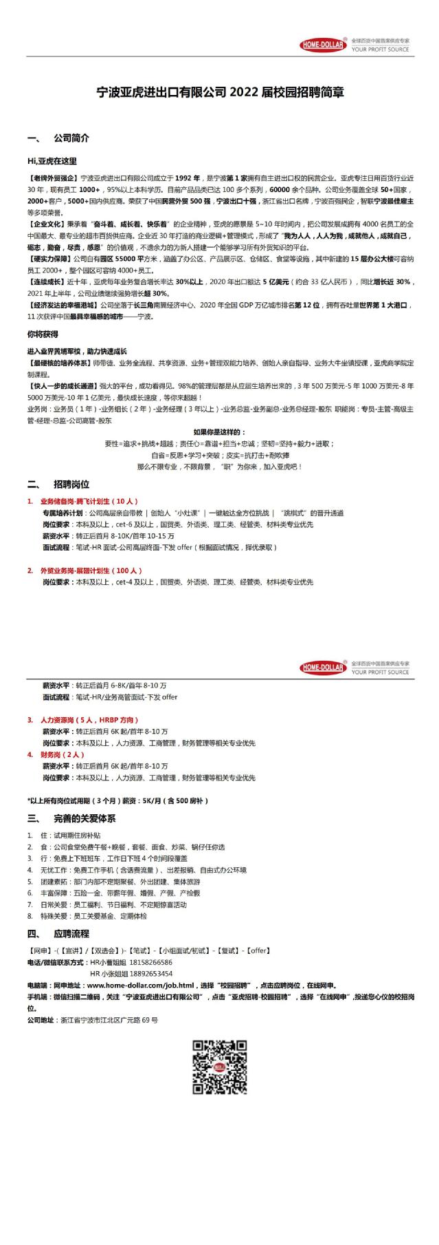 寧波亞虎進出口有限公司2022屆校園招聘會簡章