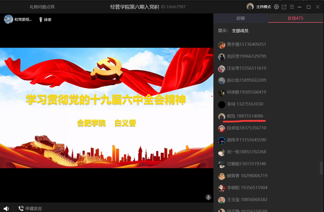 2022年4月12日,經濟與管理學院第六期入黨積極分子線上培訓班第二課《學習貫徹黨的十九屆六中全會精神》順利開講。此次黨課由校黨委委員、黨委組織部部長白義香老師擔任主講。
