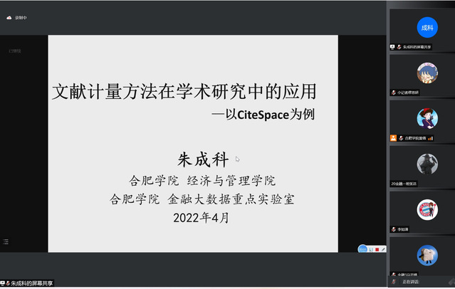 429下午,經濟與管理學院第五期南艷湖青年學者論壇在線上舉行,經濟與管理學院朱成科博士作了題為《文獻計量方法在學術研究中的應用——CiteSpace為例》的學術報告,經濟與管理學院全體研究生等100余名師生線上參會。