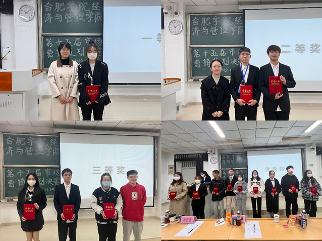 比賽伊始,主持人向大家簡單介紹此次決賽的流程以及評分規(guī)則。本次比賽共15支隊(duì)伍參加,每組代表有5分鐘PPT講演時(shí)間,演講完畢,小組成員上臺進(jìn)行答辯。參賽隊(duì)伍通過賽前所搜集的材料向評委們介紹本隊(duì)所營銷的產(chǎn)品,部分參賽小組還帶來視頻或表演,生動(dòng)形象地展示了產(chǎn)品的獨(dú)特優(yōu)勢,為比賽增添更多趣味性。答辯環(huán)節(jié),評委們針對策劃書內(nèi)容和PPT講演對隊(duì)伍的三名代表進(jìn)行提問。各組代表臨場不懼,對答如流,充分表達(dá)自身對問題的見解和思路。張老師針對營銷策劃書的邏輯性問題提出質(zhì)詢,并對各組市場營銷模型分析提出專業(yè)意見。劉老師從各個(gè)產(chǎn)品營銷策略實(shí)施可行性角度展開提問,考驗(yàn)答辯同學(xué)對產(chǎn)品的把握度。余老師則從生活實(shí)際出發(fā),對產(chǎn)品的用戶實(shí)際體驗(yàn)感提出不足之處。最后由張老師、劉老師、余老師、李智同學(xué)分別為獲得本次比賽一等獎(jiǎng)、二等獎(jiǎng)、三等獎(jiǎng)、優(yōu)秀獎(jiǎng)的參賽隊(duì)伍進(jìn)行頒獎(jiǎng)并合影留戀。