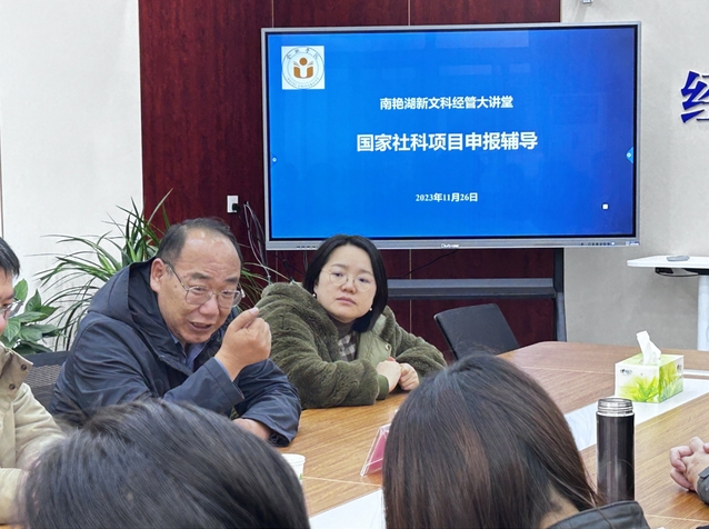 11月26日下午,經濟與管理學院于一期校園四棟二樓會議室舉辦南艷湖新文科經管大講堂暨2024年國家社科項目申報輔導會,華東師范大學郝宇青教授、東華大學任園教授、同濟大學李成教授應邀作報告,經濟與管理學院院長陳江華主持,學院中青年教師踴躍參加會議。