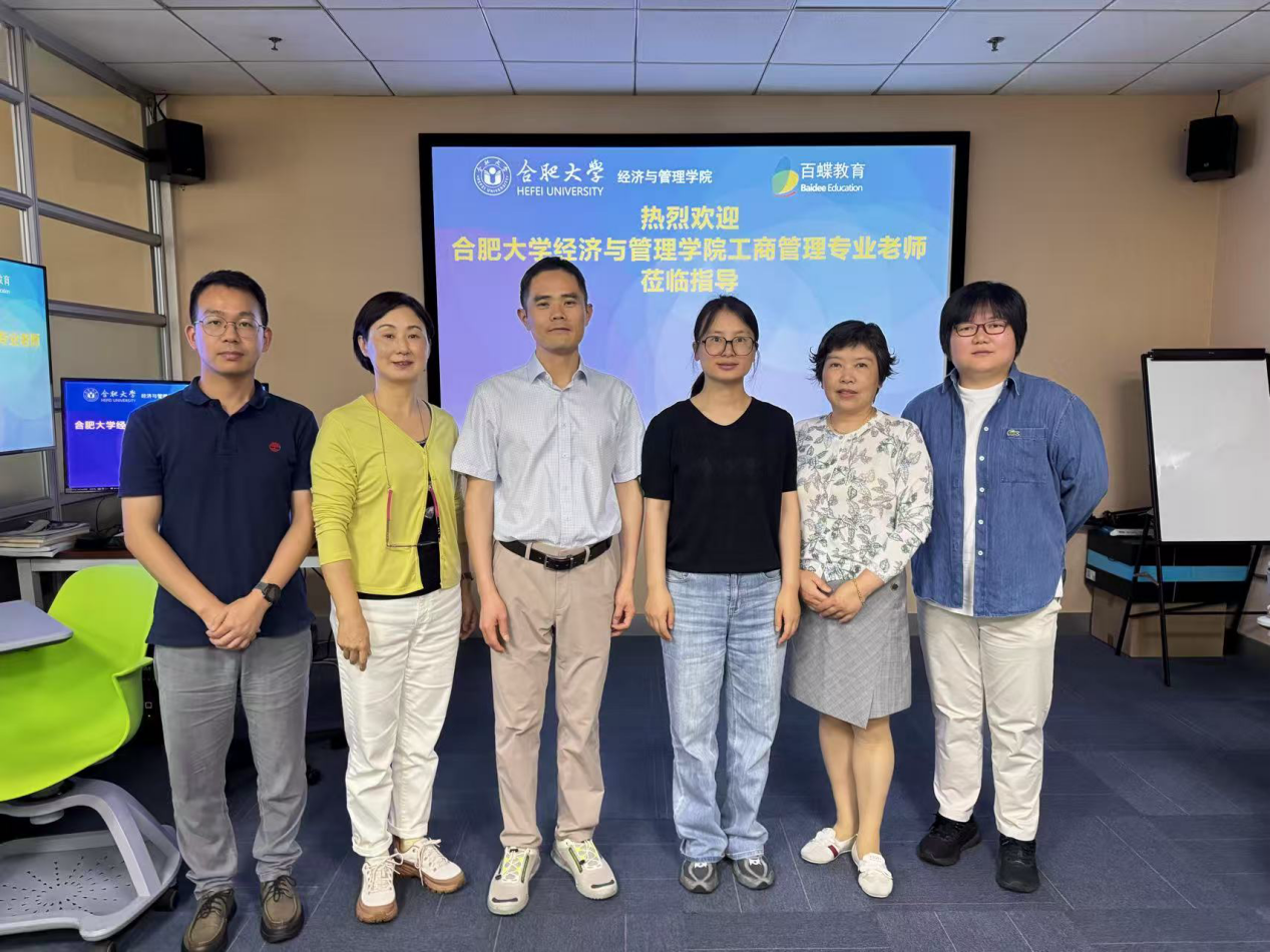 為深入貫徹落實“訪企拓崗促就業”專項行動,推動工商管理人才培養與企業發展實際深度對接。6月12日上午,合肥大學經濟與管理學院組織教師代表一行走進上海百蝶教育科技有限公司,開展調研交流活動。此次活動由財務會計系主任鄭姍姍帶隊,專業主任杜宇及專業教師方群、周舟共同參與。