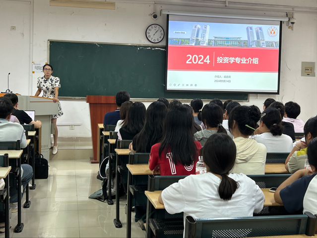 接著,由投資專業負責人戚名俠對投資學進行專業介紹。戚名俠老師從專業發展及人才培育方案、專業師資隊伍與平臺建設、專業實踐與學科競賽方面進行了介紹,讓新生們對于投資學專業有了初步的了解和感受,并鼓勵新生們樹立遠大目標,明確努力方向,夯實專業基礎,腳踏實地,書寫屬于自己的精彩華章!