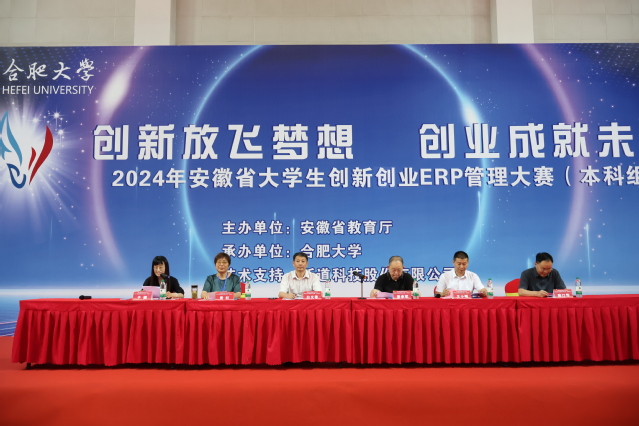 2024年7月20日,安徽省大學生創新創業ERP管理大賽(本科組)在我校舉辦,來自34所高校的100支優秀代表隊、近700名師生參賽。校黨委委員、副校長白義香出席,安徽省大學生創新創業教育辦公室主任、校大學生創新創業教育處處長董承軍,合肥師范學院經濟與管理學院院長黃虹,經濟與管理學院院長陳江華,新道科技股份有限公司安徽分公司總經理王小明等參加開幕式。開幕式由經濟與管理學院副院長于娜主持。