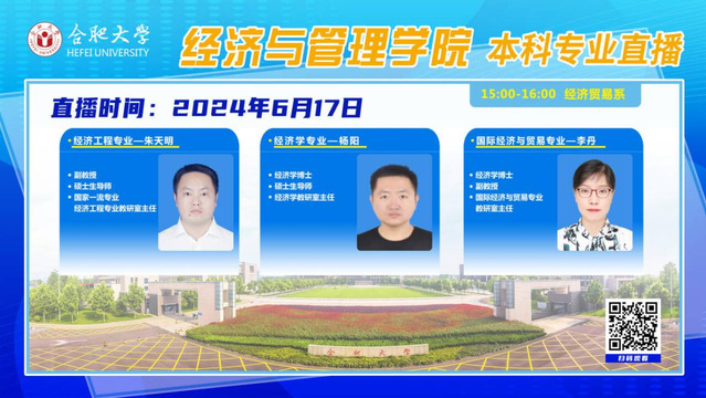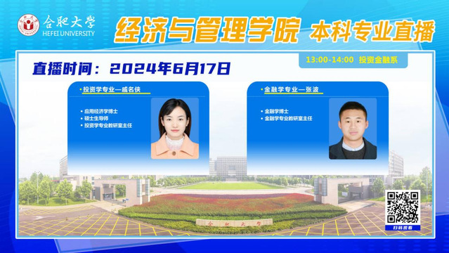 2024年6月17日,合肥大學(xué)經(jīng)濟(jì)與管理學(xué)院各專業(yè)負(fù)責(zé)人走進(jìn)直播間,通過(guò)在線直播的形式,連接學(xué)生與高校,讓未來(lái)的大學(xué)生們?cè)谄聊磺熬湍軌蛏钊肓私馕以旱谋究茖I(yè)設(shè)置、課程內(nèi)容、師資力量、就業(yè)前景及校園生活等方方面面的信息。 本次直播涉及到物流管理系、經(jīng)濟(jì)貿(mào)易系、財(cái)務(wù)會(huì)計(jì)系以及投資金融系共10個(gè)普通本科專業(yè)和1個(gè)物流管理對(duì)外合作專業(yè)。各位專業(yè)負(fù)責(zé)人從專業(yè)培養(yǎng)目標(biāo)、專業(yè)特色以及就業(yè)前景等多個(gè)方面全面介紹了各個(gè)專業(yè)“是什么”、“學(xué)什么”以及“干什么”的問(wèn)題。