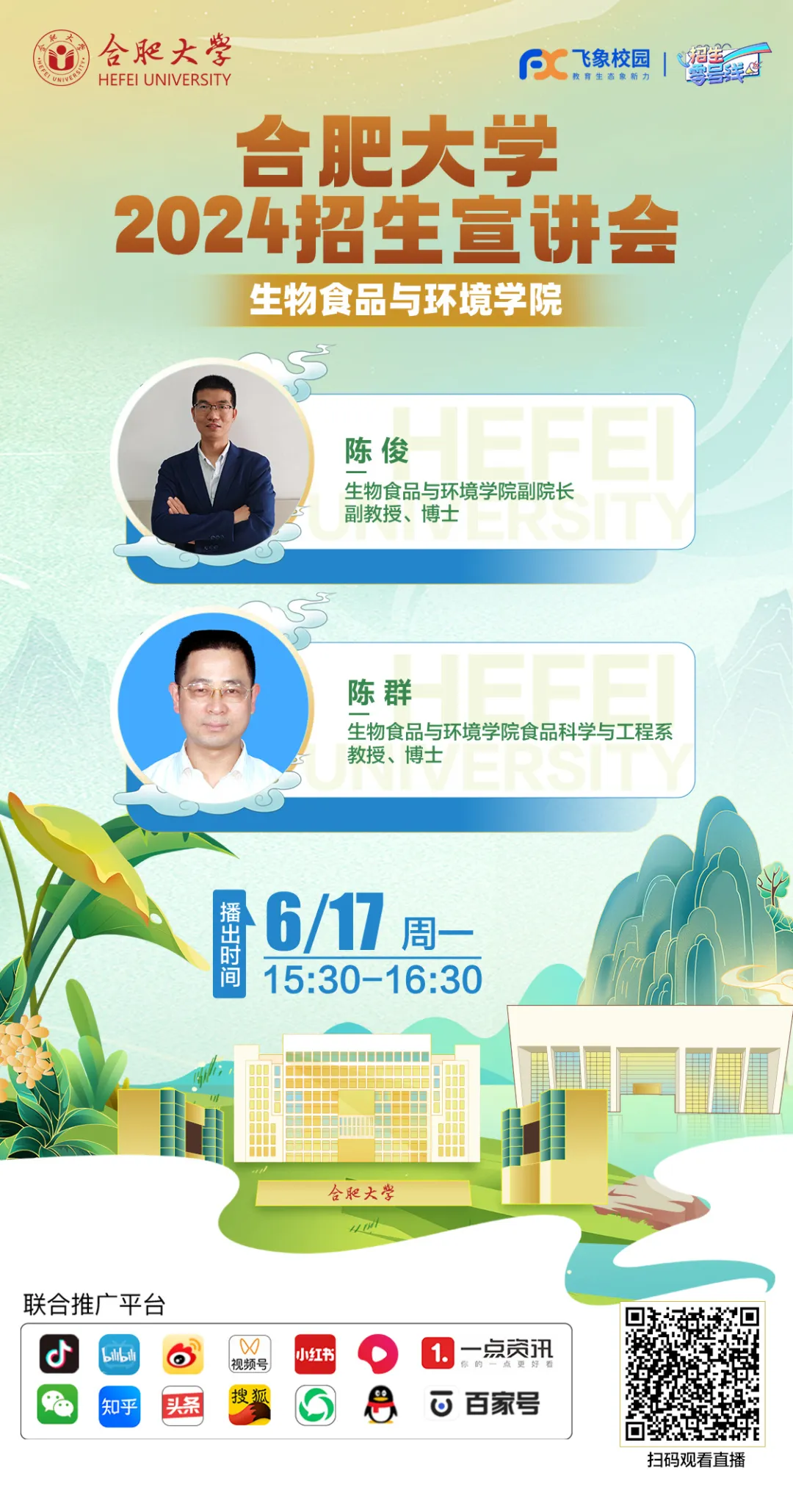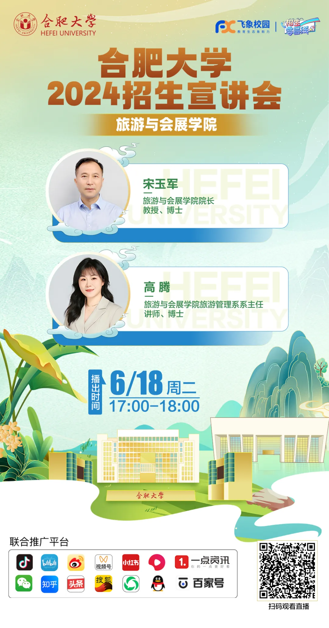 2024年招生宣講系列直播 精彩來(lái)襲 6月17日-6月18日 各學(xué)院院長(zhǎng)、教授走進(jìn)直播間 全方位解讀 專業(yè)特色、學(xué)科優(yōu)勢(shì) 人才培養(yǎng)、就業(yè)前景 …… 感受合大辦學(xué)力量 探索多元學(xué)科魅力 零距離回答考生問(wèn)題 精準(zhǔn)助力志愿填報(bào)