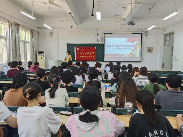 2024年5月16日中午,經(jīng)濟(jì)與管理學(xué)院工商管理學(xué)生黨支部在6棟101教室開(kāi)展第十期入黨積極分子交流研討會(huì),與支部黨員共同學(xué)習(xí)交流研討《中國(guó)共產(chǎn)黨紀(jì)律處分條例》。 首先,支部負(fù)責(zé)人向大家宣讀此次《條例》修訂的新增內(nèi)容和介紹《條例》的突出特點(diǎn),并與學(xué)生黨支部?jī)?nèi)的紀(jì)律規(guī)定相聯(lián)系,強(qiáng)調(diào)了黨組織紀(jì)律教育的重要性。接著,學(xué)員們根據(jù)《條例》主要內(nèi)容,結(jié)合全面從嚴(yán)治黨發(fā)表自己的理解與看法,提出“要將紀(jì)律意識(shí)刻進(jìn)骨子里,把鐵的紀(jì)律轉(zhuǎn)化為日常習(xí)慣和自覺(jué)遵循”、“要用黨員標(biāo)準(zhǔn)嚴(yán)格要求自己,嚴(yán)守黨的紀(jì)律,砥礪擔(dān)當(dāng)作為”。最后,全體學(xué)員就“如何做到學(xué)紀(jì)知紀(jì)明紀(jì)守紀(jì)”共同展開(kāi)討論,上至遵照黨規(guī)黨紀(jì),下至結(jié)合學(xué)生日常行為守則,學(xué)員們紛紛提出自己的建議,總結(jié)概括為“系統(tǒng)全面學(xué)習(xí)、行為自覺(jué)、加強(qiáng)自身約束、起到模范帶頭作用”四個(gè)方面。