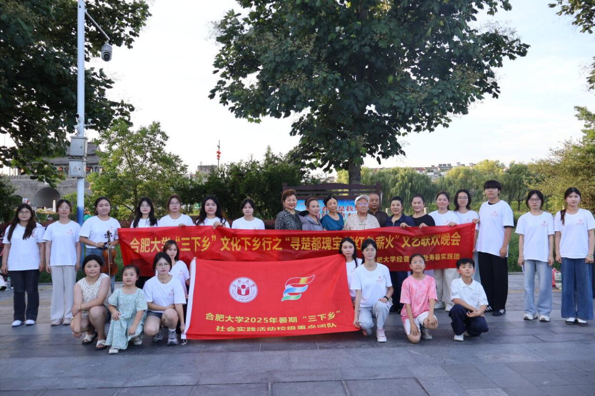 為深化校地文化共建,賦能鄉鎮振興,合肥大學經濟與管理學院“合啟淮章”暑期三下鄉實踐團隊聯合壽縣非遺傳承人、當地居民,于7月1日下午在壽縣春申廣場成功舉辦 “尋楚都瑰寶,續紅色薪火”文藝聯歡晚會。