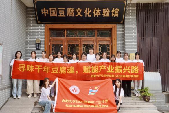 為助力鄉(xiāng)村振興,探究傳統(tǒng)豆腐產(chǎn)業(yè)的創(chuàng)新發(fā)展路徑,6月29日,合肥大學(xué)經(jīng)濟(jì)與管理學(xué)院“合啟淮章”團(tuán)隊(duì)赴淮南市壽縣八公山鄉(xiāng)開展暑期“三下鄉(xiāng)”社會(huì)實(shí)踐,深入中國豆腐村開展實(shí)地考察、訪談體驗(yàn),為當(dāng)?shù)囟垢a(chǎn)業(yè)振興建言獻(xiàn)策。
