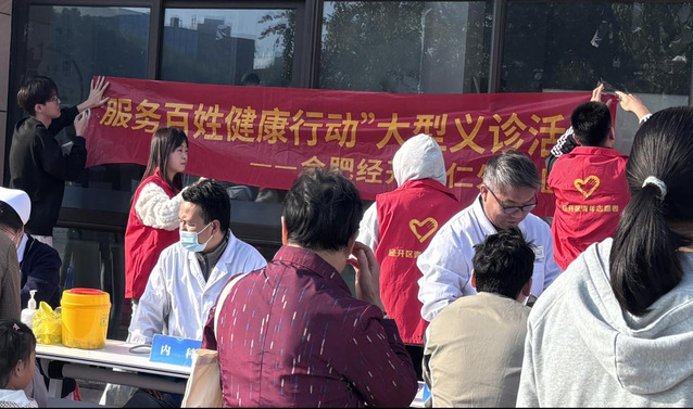 2024年11月12日,合肥大學金融學學生黨支部黨員與第十一期入黨積極分子前往海恒社區耕耘居民區開展社區“義診”志愿服務活動。 支部志愿者分為若干小組,一方面,協助社區工作人員進行了活動現場的布置;另一方面,也以飽滿的熱情和專業的態度,引導著社區居民有序就診。志愿者的耐心答疑和細致服務也贏得了居民的贊許。