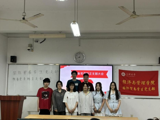 2024年5月23日,國際貿易學生黨支部順利召開黨員大會暨預備黨員轉正支部大會。 會上,黨支部書記劉丹青帶領全體黨員對《中國共產黨紀律處分條例》第四章進行學習。隨后,由預備黨員匯報自己預備期內思想、學習、工作情況。八位預備黨員結合自身情況,依次匯報了自己在預備期一年內的綜合表現,同時也剖析了自己存在的不足之處,表明了要成為中共正式黨員的態度和決心。接著入黨介紹人介紹預備黨員在預備期內的培養考察情況,對八位預備黨員是否轉正均發表了積極意見。而后在充分討論的基礎上,采用無記名投票方式,由正式黨員對預備黨員轉正進行票決,并宣讀決議,通過了八位同志的轉正申請。最后,黨支部書記劉丹青總結發言,教導各位黨員同志時刻保持警覺,提高自我要求,不斷加強學習,在各自的崗位上發揮先鋒模范作用,無論面對怎樣的挑戰,都要堅定信念,勇挑重擔,為黨和人民的事業,為社會的發展貢獻力量。