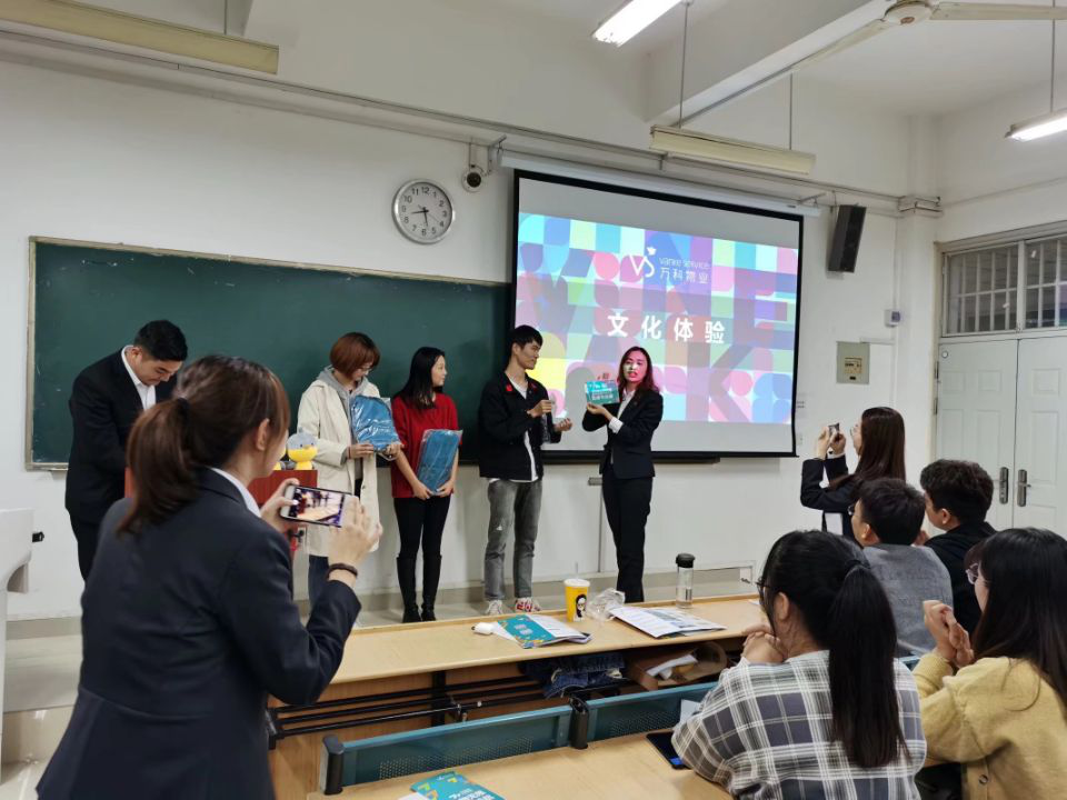 2020年10月20日,萬科物業2021屆校園招聘會召開,16級畢業生倪濤濤主持會議,會議以熱場小活動的形式開場,氣氛活躍。在倪濤濤介紹萬科物業巨大潛力及業務布局后,在座學子踴躍向招聘人員提出相關問題,他們都一一回答,讓同學們對萬科物業有了深刻了解。
