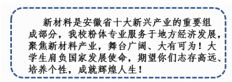 本專業(yè)立足安徽區(qū)域經(jīng)濟發(fā)展,面向長三角綜合新材料產(chǎn)業(yè)聚集區(qū),重點發(fā)展新能源材料、新型顯示材料、先進半導體材料、生物應用材料等材料發(fā)展新趨勢,主動設置與產(chǎn)業(yè)鏈緊密對接專業(yè)方向和學科交融,構建了粉體制備技術、粉體現(xiàn)代材料成形技術和粉體綜合應用3個專業(yè)方向,形成了專業(yè)特色。
