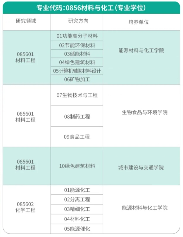 “材料與化工”專業(yè)學位碩士點招生代碼及開設的研究方向