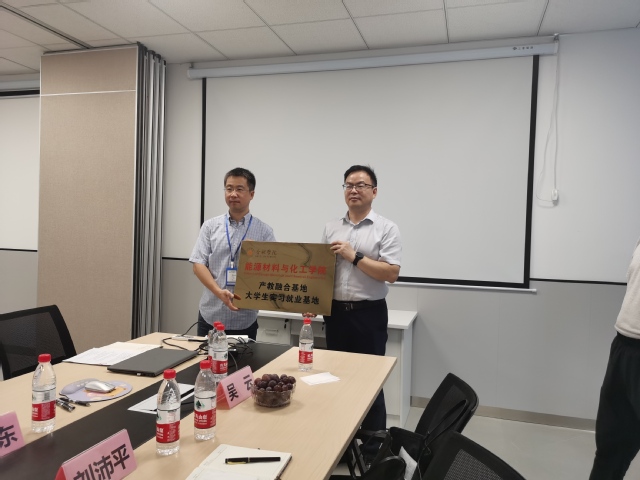 接著一行人來到山東富海石化工程有限公司安徽分公司。公司于2016年成立,主要從事基礎化學和精細化學品制造行業施工圖設計等業務,屬于專業的化工設計公司。目前我院有3名畢業生在該公司工作,表現良好。座談交流中,企業相關部門負責人從公司發展歷程、主營業務、人才培養和企業愿景等方面展開了介紹,并表現來強烈的人才需求愿望。隨后,胡坤宏院長介紹了學院相關情況,并表示這次既是來看望學生,也是聽取企業對學校人才培養工作的意見與建議,希望下一步能夠在人才培養過程中進一步加深、加強合作,最后雙方進行了畢業生實習就業基地簽約掛牌儀式。