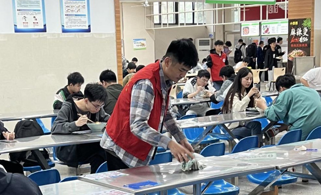 為深入學習貫徹習近平生態文明思想,以文明實踐助力文明創建,進一步提高我院學生文明素養,培育校園新風,努力營造積極向上、健康和諧的校園文明氛圍,我院決定于4月21日至25日在二、三期食堂舉辦維護食堂秩序志愿活動。在這次維護食堂秩序的志愿活動中,志愿者們不辭辛苦,幫助食堂工作人員做好衛生清理工作,彰顯新時代青年們的無私奉獻精神。