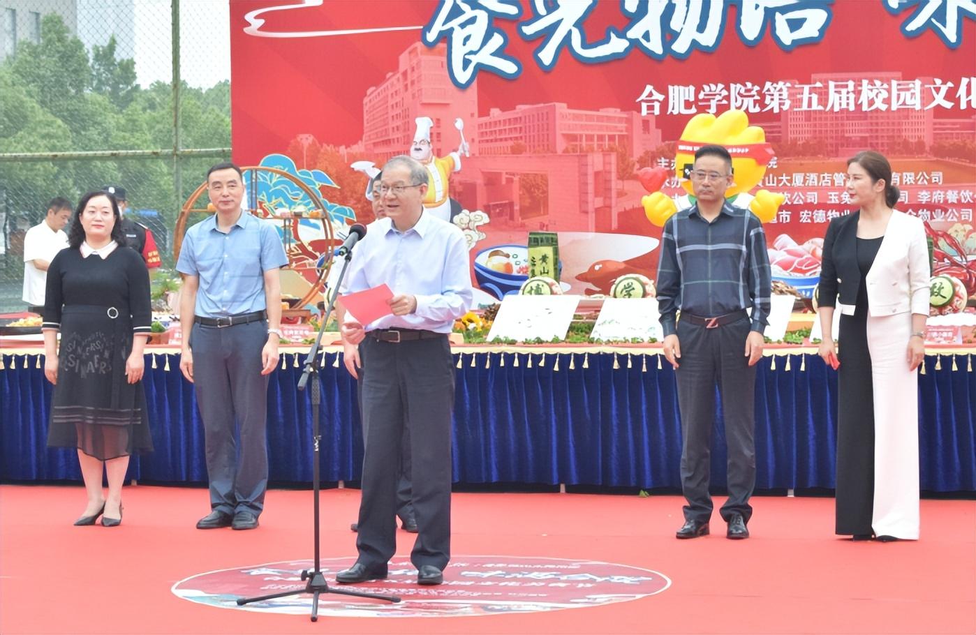 529日下午,由學校主辦、黃山大廈集團承辦的第五屆校園文化美食節在三期運動場舉辦。黨委書記王其東、合肥黃山大廈酒店董事長王建、合肥黃山大廈酒店集團總經理鄭群等受邀出席,財務處、后勤集團等部門負責人及部分師生代表參加活動。
