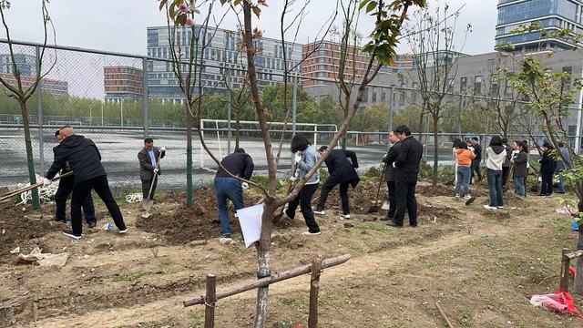 活動現場,大家有序組隊、分工協作、干勁十足,挖坑、扶苗、培土……每個環節都做得認真細致、有條不紊,以飽滿的熱情投入到種一株綠,收獲一片春的行動中經過一個多小時的努力,一棵棵樹苗在游泳館的東南角穩穩扎下了根,為校園綠色發展再添一片新綠。