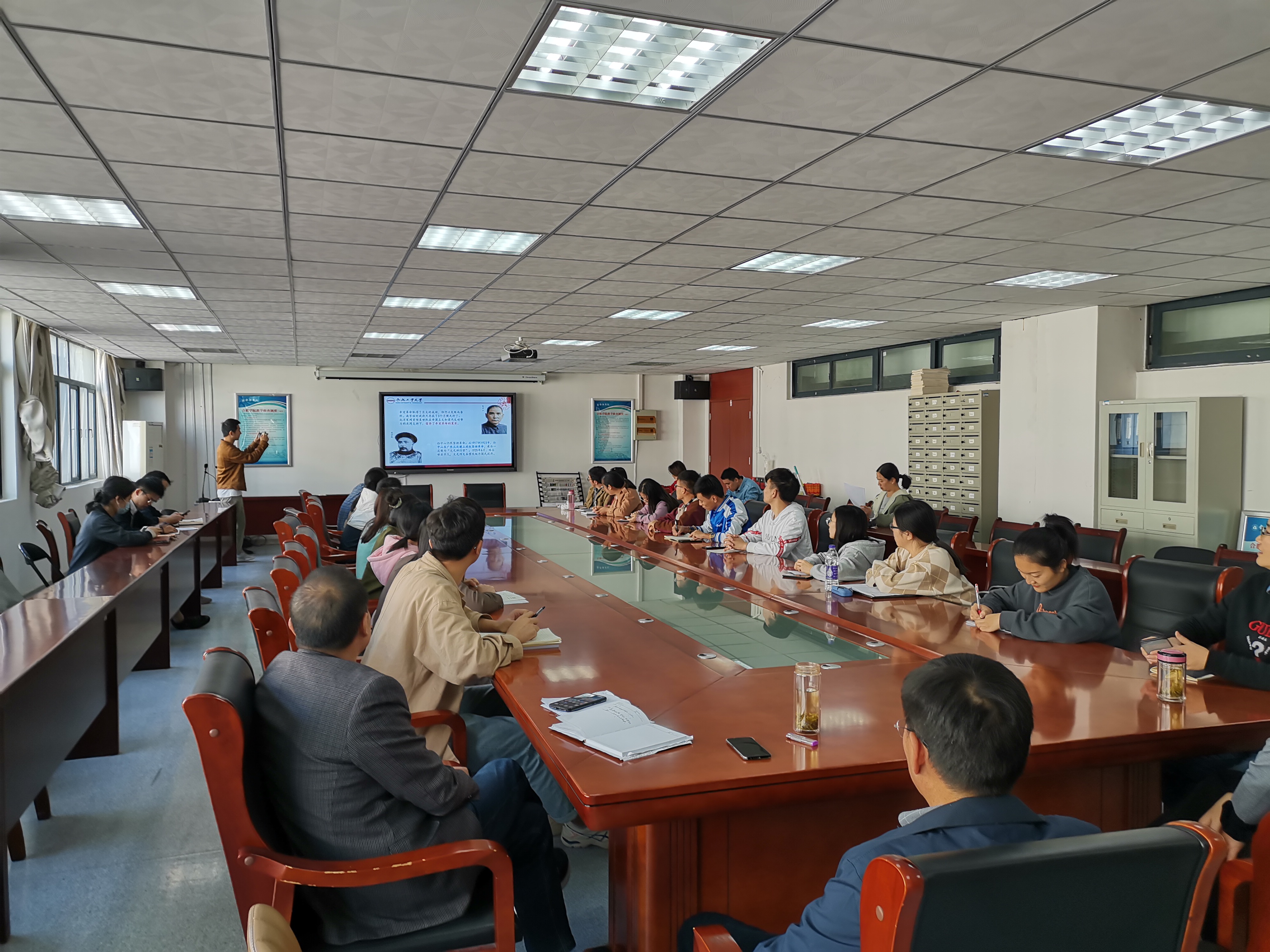 為更好學習黨史、新中國史、改革開放史、社會主義發展史,推動新時代紅色基因傳承,114日下午2點,城市建設與交通學院組織師生在院大會議室組織觀看“同上一堂課·網上重走長征路暨推動‘四史’教育”活動。城建學院黨委委員、支部書記、支委和部分師生黨員參加。