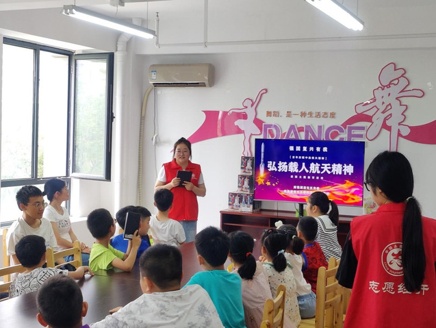 為持續推動黨員和入黨積極分子到社區開展志愿服務,弘揚志愿服務精神,2023年6月17日上午,城市建設與交通學院學生第二黨支部部分黨員和入黨積極分子參加了南艷湖居委會組織開展的“弘揚載人航天精神”愛國主題教育活動。