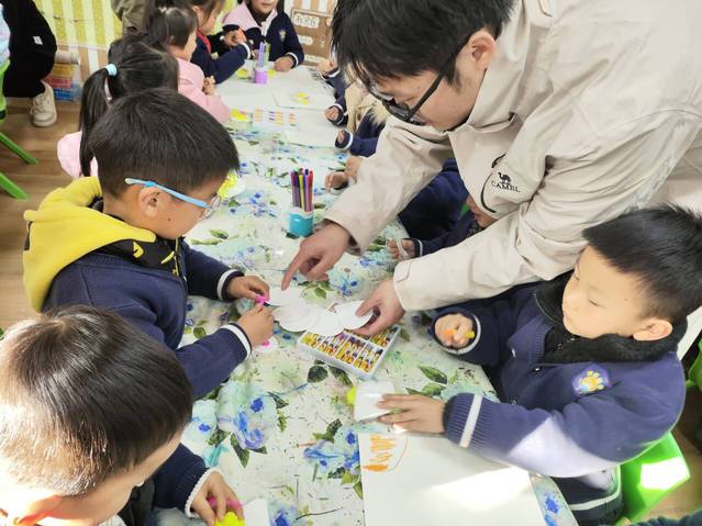 到達(dá)海恒幼兒園后,在幼兒園負(fù)責(zé)老師的配合下,學(xué)生黨員們先用生動的案例講述了環(huán)境保護(hù)的重要,然后引導(dǎo)大班小朋友們在空白風(fēng)車和速寫紙上作畫。孩子們發(fā)揮想象力,不停地?fù)]動油畫棒、水彩筆,做出一幅幅生動有趣的圖畫,有的和大樹手拉手成為了好朋友,有的在干凈藍(lán)藍(lán)的海邊奔跑,有的畫出了蔚藍(lán)的天空和一望無際的草原......學(xué)生黨員與孩子們將保護(hù)環(huán)境的美好愿望寄予手中的畫筆,向大家傳達(dá)綠色共享的理念。