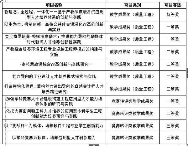 另外,學校此次評選中獲得教學成果獎11項,成績喜人,其中特等獎1項,一等獎3項,二等獎5項,三等獎2項。