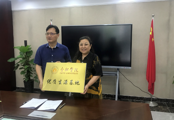 最后,江芳院長與皖智中學郭祖彬校長簽署了《合肥學院優秀生源地合作協議書》,并授予合肥學院優秀生源基地牌匾。
