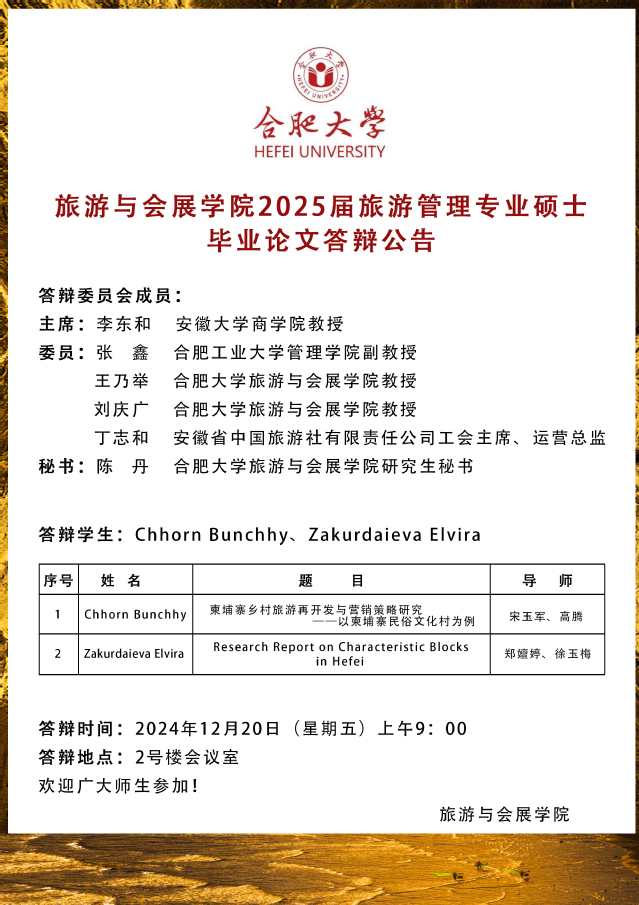 旅游與會展學院2025屆旅游管理專業碩士畢業論文答辯公告