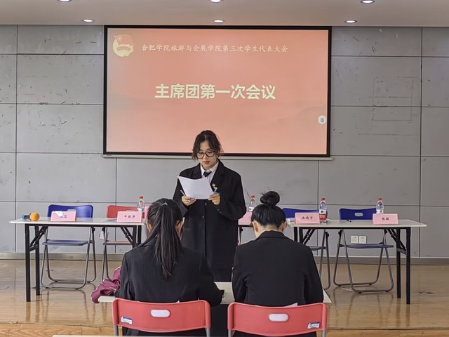 合肥學院旅游與會展學院第三次學生代表大會主席團第一次會議于6月2日在三區大學生活動中心二順利舉行。參與本次會議的有旅游與會展學院團委第十九屆學生會主席團成員和各學代會代表團團長,此次會議由主席團成員徐婧宇主持。