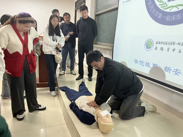 高志凌醫(yī)師以心肺復(fù)蘇及常用中西醫(yī)急救知識(shí)普及為主題從簡(jiǎn)易止血術(shù)、燙傷、現(xiàn)代心肺復(fù)蘇術(shù)、海姆立克急救法、保健穴位五個(gè)方面向大家講述常用醫(yī)療知識(shí)首先,他將觸電、溺水、摔傷出血、燙傷等突發(fā)性情況與課件結(jié)合學(xué)生們介紹簡(jiǎn)易的止血術(shù),讓大家對(duì)急救知識(shí)有了一個(gè)基本的認(rèn)識(shí)。接著,高醫(yī)師圍繞心肺復(fù)蘇、海姆立克等內(nèi)容進(jìn)行詳細(xì)講解,介紹應(yīng)急救護(hù)的基本概念以及掌握應(yīng)急救護(hù)知識(shí)技能對(duì)于贏取救治時(shí)間、挽救生命的關(guān)鍵性作用,重點(diǎn)強(qiáng)調(diào)在各種原因?qū)е?/span>的心搏驟停,必須在在4~6分鐘內(nèi)采取的急救措施。緊接著,他結(jié)合生活實(shí)際,生動(dòng)形象地講述神門穴、內(nèi)關(guān)穴等神奇的穴位的功用。
