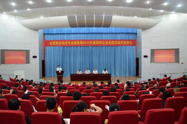 8月6日,合肥職業院校專業課教師2015年暑期到企業實踐活動開班典禮在我校圖書館學術報告廳成功召開,合肥市教育局副局長唐文水,合肥學院校長張文兵,校督導鄭永紅,合肥市教育局職成處、財審處有關負責人出席開班典禮。西偉德寶業快可美(合肥)有限公司總經理代啟宏、副總經理吳守祥以及格力電器、合肥美菱股份有限公司、海爾集團合肥園區等10家企業負責人以及合肥市22所職業院校180名教師參會,開班典禮由鄭永紅主持。