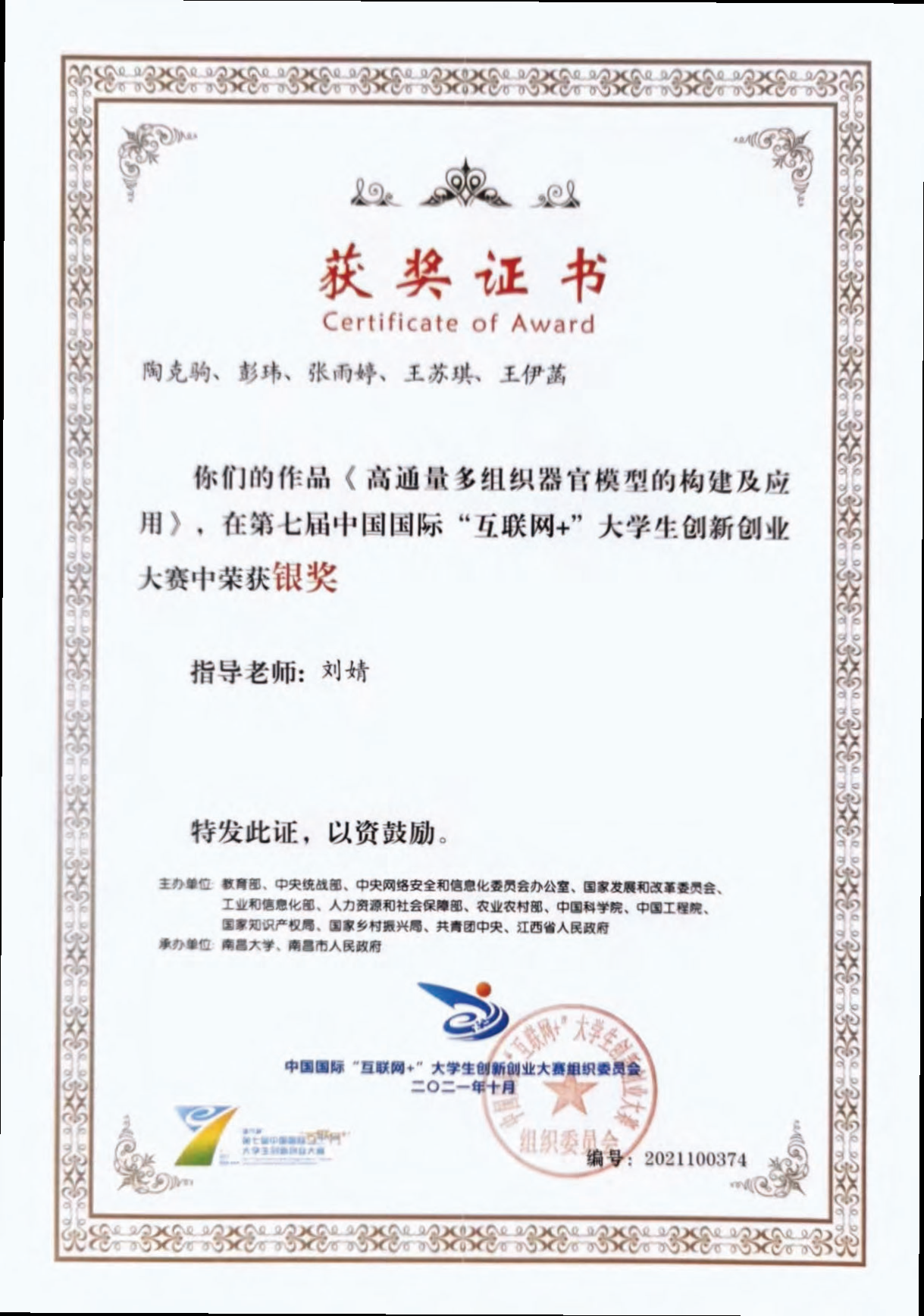 代表性獲獎(jiǎng)證書: