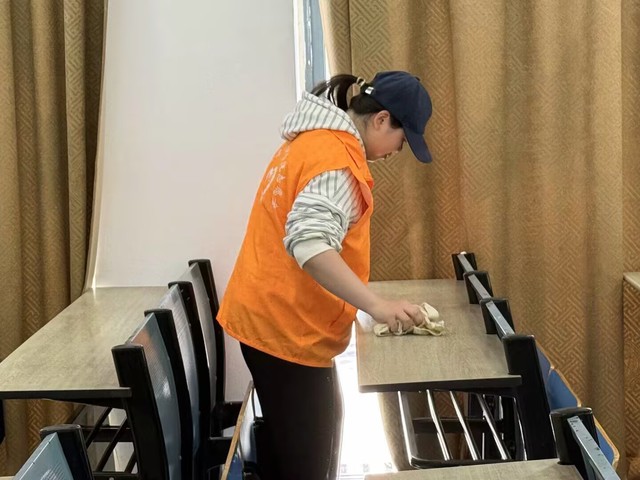 活動開始前,各負責人對參與人員進行了詳細的任務分配。在清掃過程中,大家分工明確、配合默契。同學們手持掃帚、抹布等清潔工具,穿梭在教室、走廊和樓梯間,認真擦拭著桌椅、門窗,清掃地面的垃圾,不放過任何一個衛生死角。他們不怕臟、不怕累,以飽滿的熱情投入到清掃工作中,展現出良好的精神風貌和團隊協作能力。經過兩個小時的努力,三十五棟教學樓的公共區域煥然一新。教室里桌椅擺放整齊,地面干凈整潔;走廊和樓梯也變得寬敞明亮,空氣中彌漫著清新的氣息。