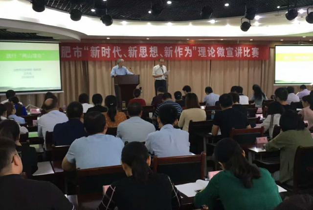 2018年9月28日—30日,由合肥市委宣傳部主辦、市委講師團承辦的合肥市“新時代、新思想、新作為”理論微宣講比賽舉行。本次比賽有來自各縣(市)區委宣傳部、市直機關工委、市委教育工委等單位的39名優秀理論工作者和基層理論宣講骨干參加,市委常委、宣傳部部長鐘俊杰現場觀摩比賽。