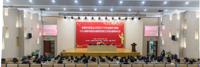為全面貫徹落實黨的十九大精神,不斷推動馬克思主義理論創新發展和馬克思主義理論學科建設,11月24日至25日,由安徽工程大學承辦的安徽省馬克思主義學會2017年年會暨學習貫徹十九大精神與落實全國高校思政工作會議精神研討會在蕪湖國家廣告產業園隆重召開。安徽省馬克思主義學會會長、皖南醫學院黨委書記王先俊,安徽省馬克思主義學會副會長、安徽工程大學黨委副書記蘇國紅,學會顧問、合肥工業大學教授鐘玉海,安徽省馬克思主義學會常務副會長、安徽醫科大學馬克思主義學院院長王兆良以及馬克思主義學會的副會長、常務理事等出席會議。來自全省各高校馬克思主義學院院長和教師代表,以及科研院所、黨校、講師團等單位的代表140余人出席。我校馬克思主義學院胡艷萍院長參加了會議。