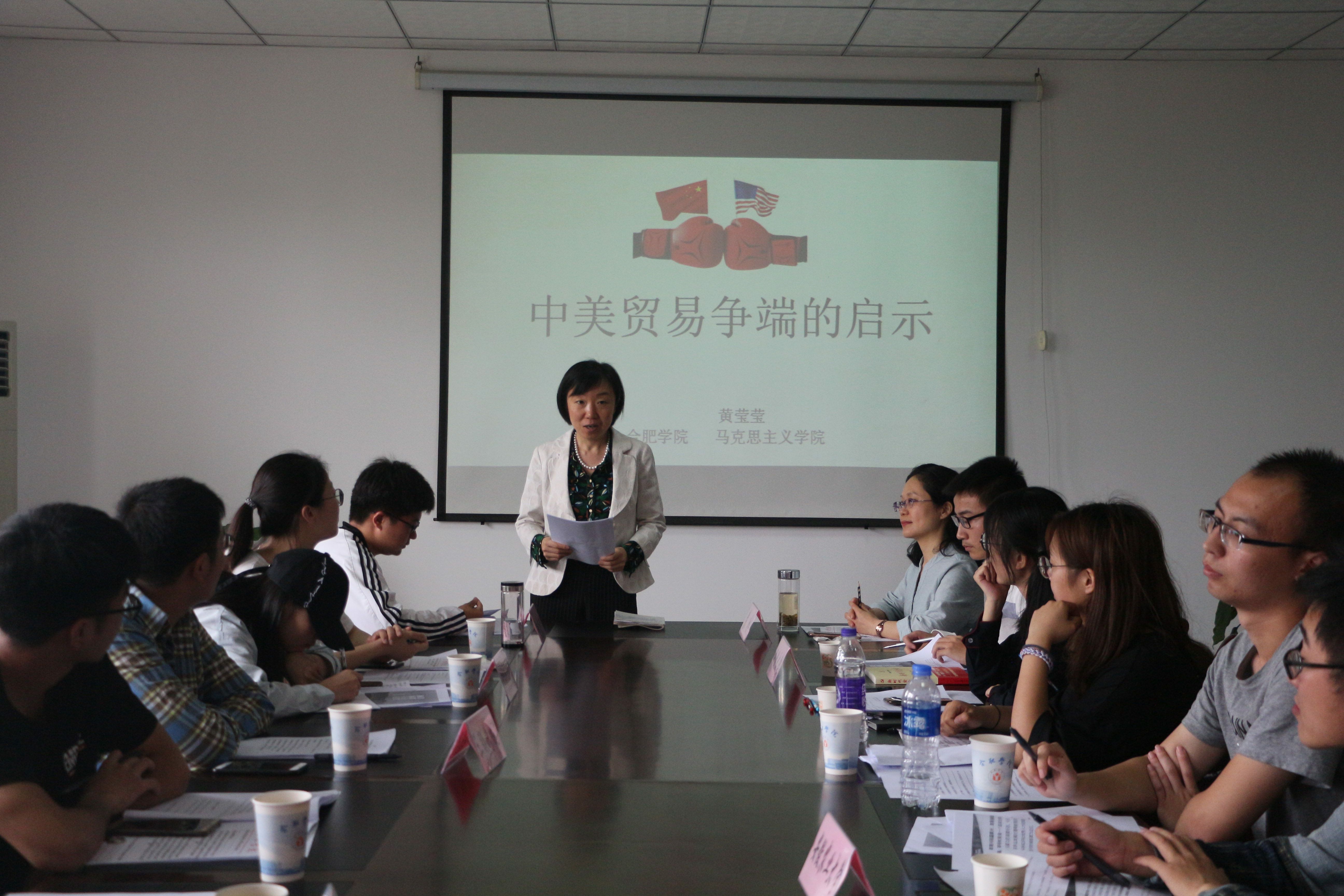 中研會(huì)指導(dǎo)老師黃瑩瑩聯(lián)系當(dāng)下時(shí)事熱點(diǎn),講授中美貿(mào)易摩擦的專題報(bào)告。回顧中國經(jīng)濟(jì)發(fā)展的歷程,總結(jié)歷史經(jīng)驗(yàn),并結(jié)合主流國家經(jīng)濟(jì)發(fā)展經(jīng)驗(yàn),表達(dá)了對中國未來經(jīng)濟(jì)發(fā)展的美好展望。