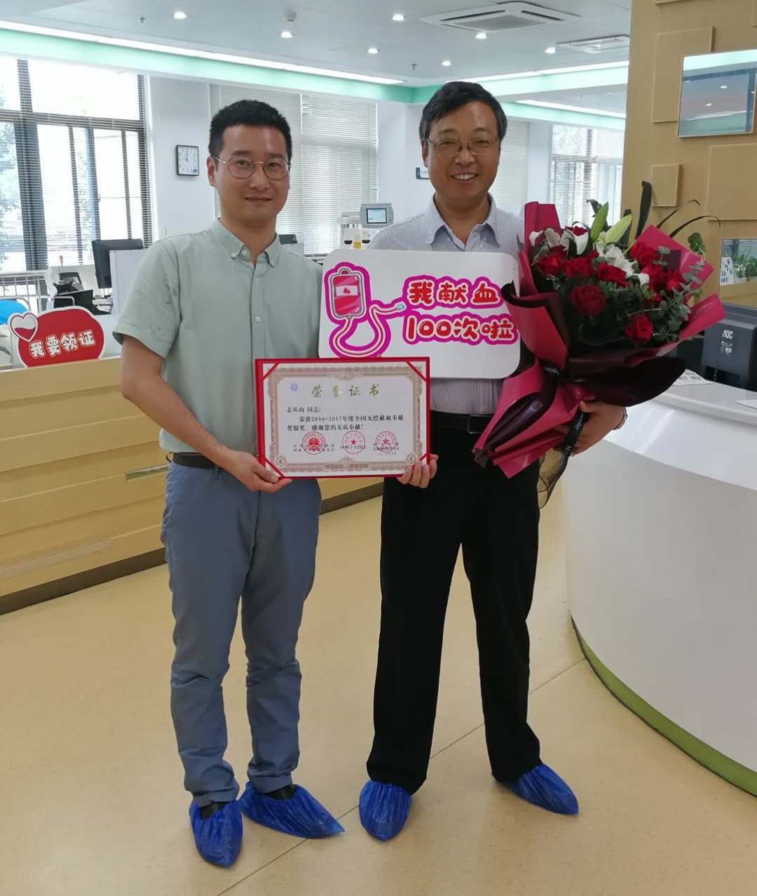 7月22日下午,56歲的姜從山來到合肥市中心血站,完成了自己第100次獻血。 截止目前,他已經捐獻血小板93次、捐獻全血7次,獻血量共計23600毫升。身為我校馬克思主義學院教師,多年來除了傳道授業解惑以外,獻血、志愿服務是他做的最多的事情。