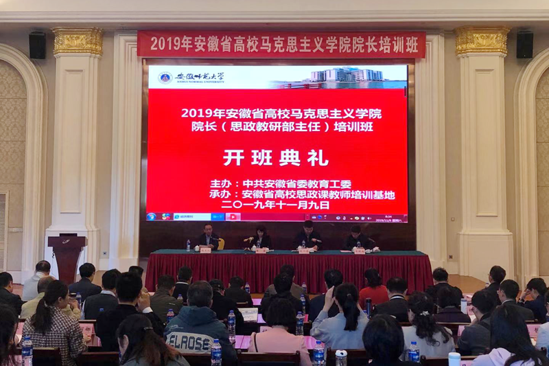 2019年11月9日至14日,由安徽省委教育工委、教育廳主辦,安徽師范大學馬克思主義學院承辦的2019年安徽省高校馬克思主義學院院長(思政教研部主任)培訓在蕪湖舉行。胡艷萍和來自全省100余所高校的馬克思主義學院院長(思政教研部主任)參加了本次培訓。