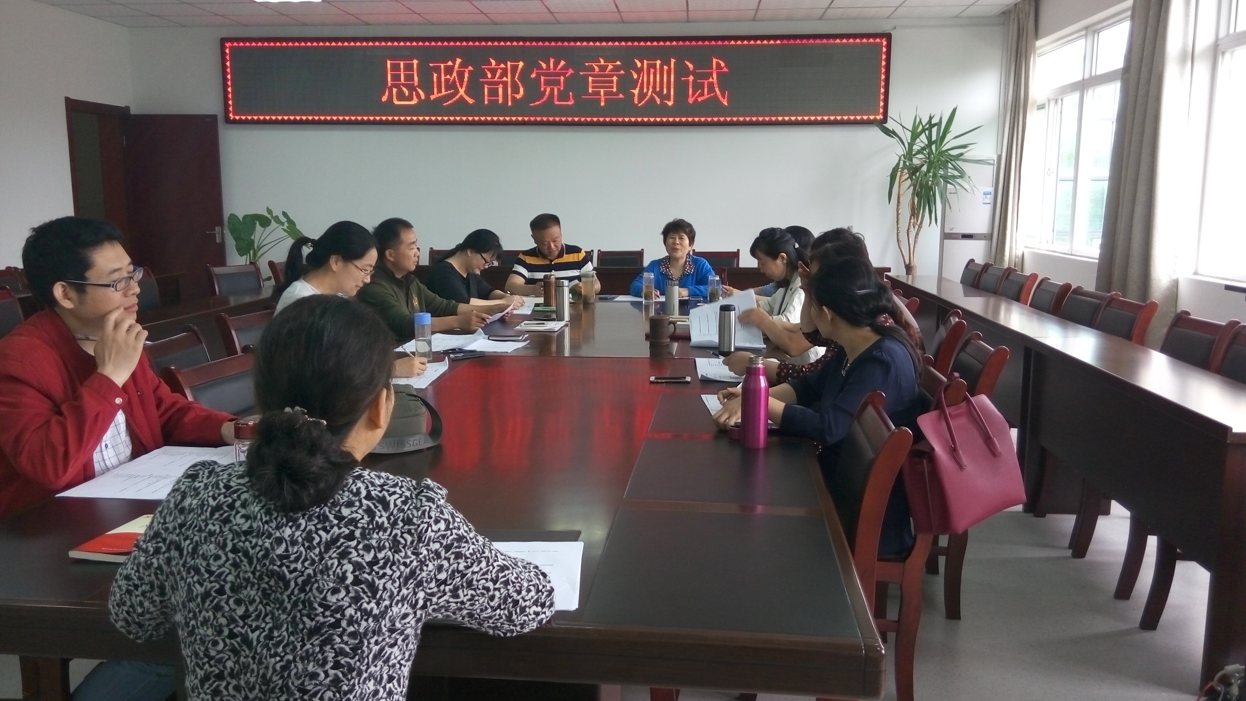 2016年6月8日上午,思政部直屬黨支部全體黨員在思政部會議進行黨章知識測試。此次測試采取紙質(zhì)試卷答題的形式,共100題,分為單選題、多選題和判斷題。經(jīng)過前段時間對黨章的持續(xù)學習和此次知識測試,每位思政部的黨員教師對于黨章都有了更加深刻的認識和體悟。