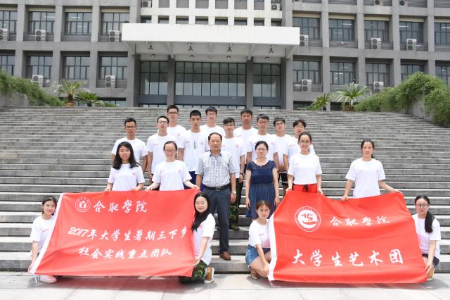 7月10日, 魏亞老師和經濟系鄧秋實老師帶領合肥學院經濟系“三下鄉”團隊一行24位同學,奔赴蕪湖市無為縣蜀山鎮開展為期10天的社會實踐活動。本次“三下鄉”實踐活動通過“中國共產黨黨史宣傳教育”及“中國夢宣傳教育活動”等理論宣講活動,“弘揚中國夢”、“爭做追夢人”、“紅色電影放映”及“防溺水安全教育”等系列支教活動,“保護生態環境”、“倡導文明旅游”及“金融知識三下鄉”等專題系列活動,“留守兒童、農村孤寡空巢老人的生存狀態調研”及有關扶貧調研活動等一系列豐富多彩的活動方案及有效形式的設計,不僅在實踐中堅持貫徹了中央有關當代大學生思想道德和品行意志的培養要求,進一步端正了大學生的價值觀和社會觀,磨練了的意志,奉獻了愛心,同時也幫助同學們提高了獨立思考和分析解決問題的能力。