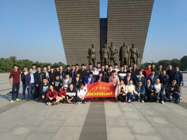 金秋十月,艷陽(yáng)高照,適逢中國(guó)共產(chǎn)黨第十九次全國(guó)代表大會(huì)勝利閉幕之際,在習(xí)近平新時(shí)代中國(guó)特色社會(huì)主義思想的指引下,10月25日上午,馬克思主義學(xué)院“中國(guó)近現(xiàn)代史綱要”教研室方競(jìng)、洪飛、蔡傳斌三位老師帶領(lǐng)16網(wǎng)絡(luò)工程專業(yè)學(xué)生赴渡江戰(zhàn)役紀(jì)念館開展本學(xué)期實(shí)踐教學(xué)。