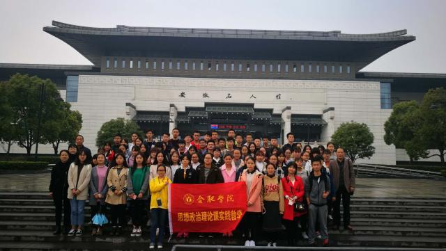為了弘揚中華傳統文化,加強愛國主義教育,幫助學生了解中國共產黨的發展歷程,牢記中國共產黨的豐功偉績,了解安徽,2017年11月16日上午,馬克思主義學院思想道德修養與法律基礎教研室王能引、郭劍峰、王霞、金麗、韓道友五位老師組織帶領17財管和17工管兩個班九十多名同學到安徽名人館參觀,開展基礎課的社會實踐活動。