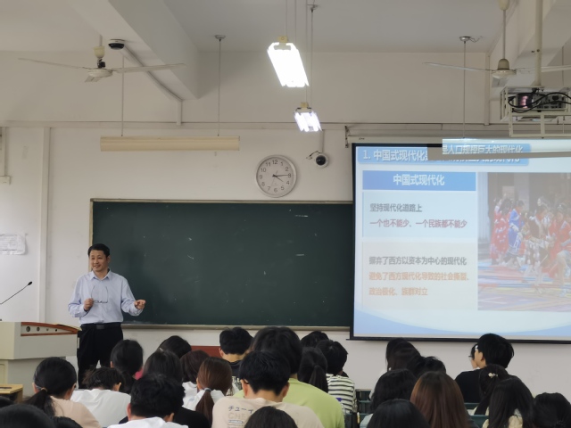 白義香主要從中國(guó)式現(xiàn)代化的特征、當(dāng)今中國(guó)面臨的機(jī)遇與挑戰(zhàn)以及新時(shí)代中國(guó)的發(fā)展目標(biāo)三個(gè)方面介紹了中國(guó)式現(xiàn)代化。他通過(guò)生動(dòng)的案例和詳實(shí)的數(shù)據(jù),深入淺出地闡述了中國(guó)式現(xiàn)代化的豐富內(nèi)涵和重大意義。授課期間,白義香與同學(xué)們積極互動(dòng),引導(dǎo)學(xué)生深入思索中國(guó)式現(xiàn)代化與個(gè)人成長(zhǎng)、國(guó)家發(fā)展的緊密關(guān)聯(lián)。他鼓勵(lì)同學(xué)們,作為新時(shí)代大學(xué)生,應(yīng)當(dāng)勤奮學(xué)習(xí),展現(xiàn)青春的朝氣銳氣,勇做走在時(shí)代前列的奮進(jìn)者、開(kāi)拓者、奉獻(xiàn)者。 此次思政課為同學(xué)們打開(kāi)了一扇深入了解中國(guó)式現(xiàn)代化的窗口,激發(fā)了同學(xué)們的責(zé)任感和使命感。同學(xué)們紛紛表示,將以更為飽滿的熱情和加倍的努力,投身中國(guó)式現(xiàn)代化建設(shè),為實(shí)現(xiàn)中華民族偉大復(fù)興貢獻(xiàn)自己的力量。 (撰稿:吳瓊 初審:王芳 復(fù)審:姜波 終審:蘇冰)