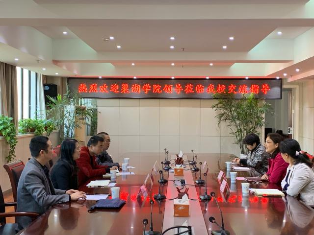 11月14日下午,巢湖學院朱定秀副校長率科技處處長萬新軍,副處長朱明等一行來我校調研交流。合肥學院黨委委員、黨委副書記劉建中,副校長陳秀,研究生處副處長葛春梅等熱情接待了巢湖學院一行。會議由葛春梅主持。