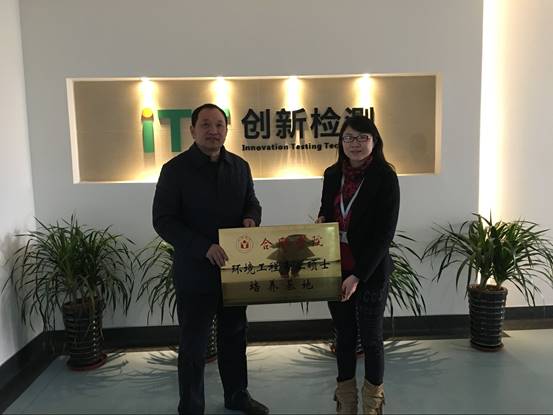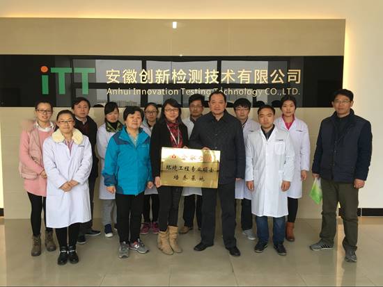 在前期調研和雙方相互了解的基礎上,2016年2月29日下午,生物與環境工程系主任俞志敏教授再次專程來到安徽創新檢測技術有限公司,與該單位袁媛總經理、周世厥總工進行會談,就雙方合作申報項目、聯合培養碩士研究生、共同建立與分享實驗室及儀器設備等問題進行深度交流。通過交流達成共識,確定安徽創新檢測技術有限公司為我校碩士專業學位研究生校外合作培養基地,每年接收我校一定數量的研究生在該單位開展實踐教學活動和開展項目學習等,最后舉行了校外培養基地授牌儀式。
