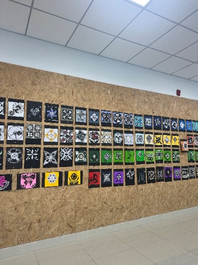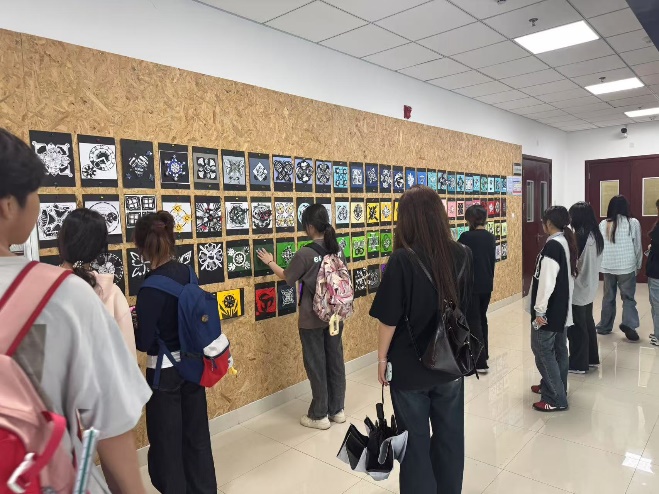 2025年4月25日,55#107公共空間化身為未來實驗室,展示藝術與科技專業《設計基礎Ⅱ》課程中竹編構成與動態圖形設計作業成果。竹編作業以竹篾為主材,通過構成原理及不同形式的編制技巧,達到的對教學中骨格結構與紋樣的設計與應用?!靶尽卑l現動態圖形設計,通過多層紙材、軸承與半立體造型設計,通過圖形的旋轉形成富有趣味的虛實光影效果,吸引眾多師生參觀互動。每幅作品均凝聚著學生的創意與心血,他們運用構成設計原理,將圖形巧妙組合,完成了對形態的創新與創造訓練,打造出突破空間維度的動態圖形互動裝置,為后續課程奠定良好基礎。