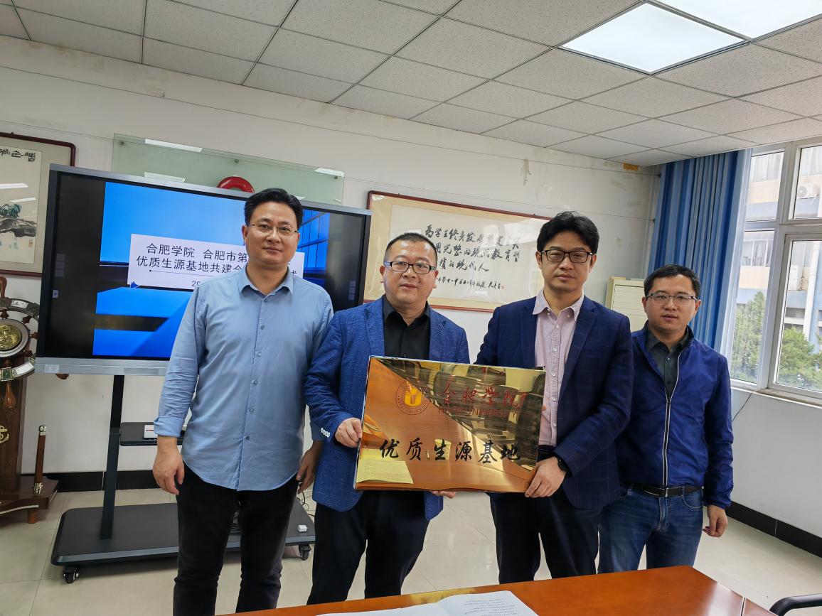 428日,合肥學院優質生源基地簽約暨授牌儀式在合肥市第十一中學舉行,設計學院副院長潘峰、產品設計專業負責人石林、第十一中學副校長徐興好、教導處主任李倫軍等出席儀式