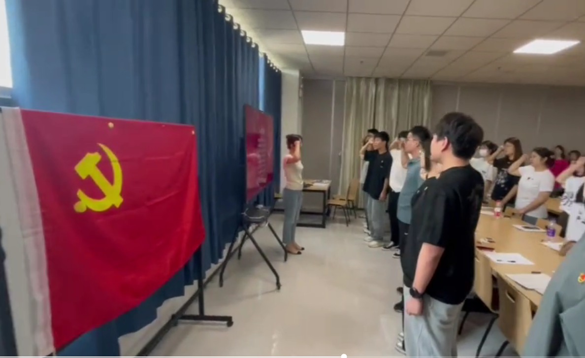最后,支部組織開展“重溫入黨誓詞,牢記黨員身份”活動。在鮮紅的黨旗前,畢業班黨員任家怡作為領誓人,帶領支部新老黨員一起高舉右手,再次莊嚴宣誓,“我志愿加入中國共產黨……隨時準備為黨和人民犧牲一切,永不叛黨。”在鏗鏘有力的宣誓中,大家重新感受到入黨時的榮譽感和使命感,更加堅定了跟黨走的信心和決心。