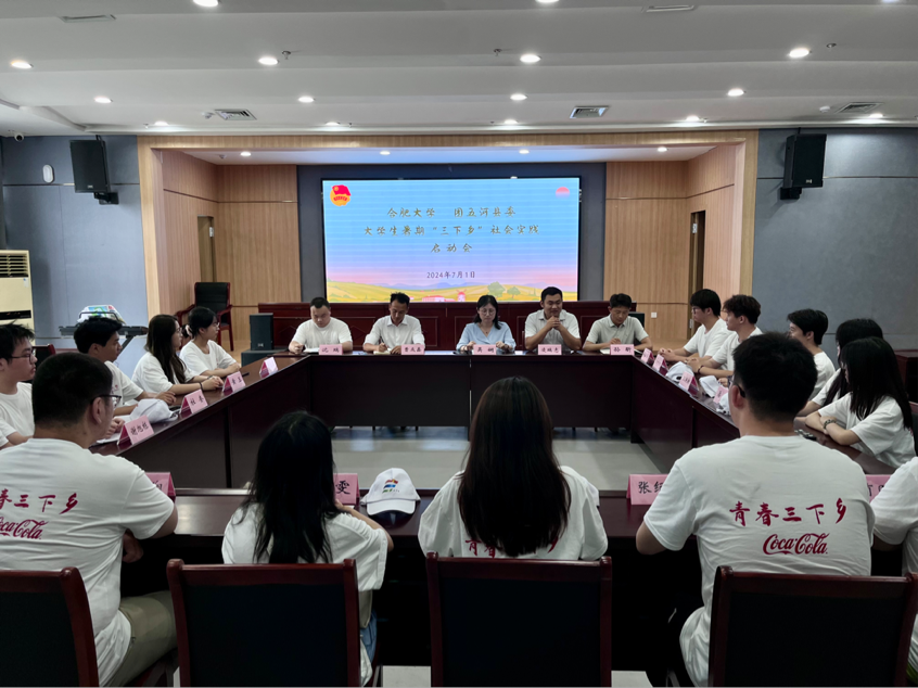 上午11點,團隊15名隊員在設計學院團委書記吳嫻老師的帶領下,從學校出發,開始我們的社會實踐活動。下午兩點,抵達五河縣新時代文明實踐中心,召開了合肥大學、團五河縣委大學生暑期“三下鄉”社會實踐啟動會。會議由團縣委副書記凌瑞志主持,吳嫻老師、小溪鎮、申集鎮、頭鋪鎮團干部、設計學院全體隊員參會。