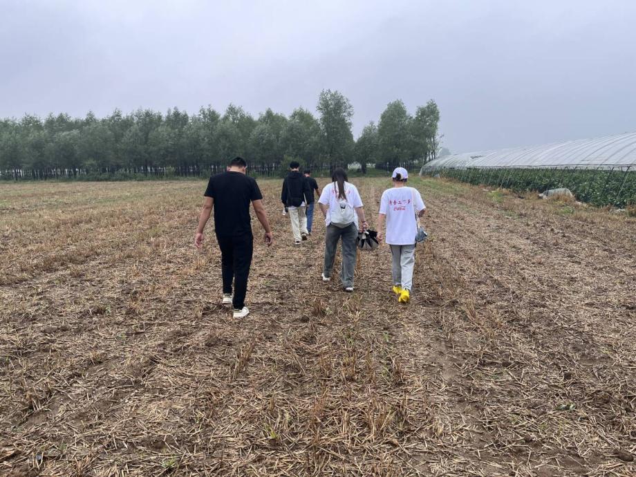 第三小組由頭鋪鎮團委副書記沈瑞帶領我們前往頭鋪鎮薛林村進行實地調研。我們了解到頭鋪鎮的主要農產品葡萄的種植情況與市場銷售情況,此外,當地還種植有線椒、青椒、白桃等農產品,同時有養牛等養殖業。我們在鎮干部的帶領下走進葡萄大棚,近距離觀察頭鋪葡萄的種植環境和生長狀況。最后,我們參觀了其他農產品的種植區域。凌書記和吳老師與當地干部進行交流,詳細了解頭鋪鎮農產品的具體設計需求,并提出打造帶有鎮域整體風格的系列設計方案,包括產品包裝、宣傳手冊、采摘地圖、IP形象等。